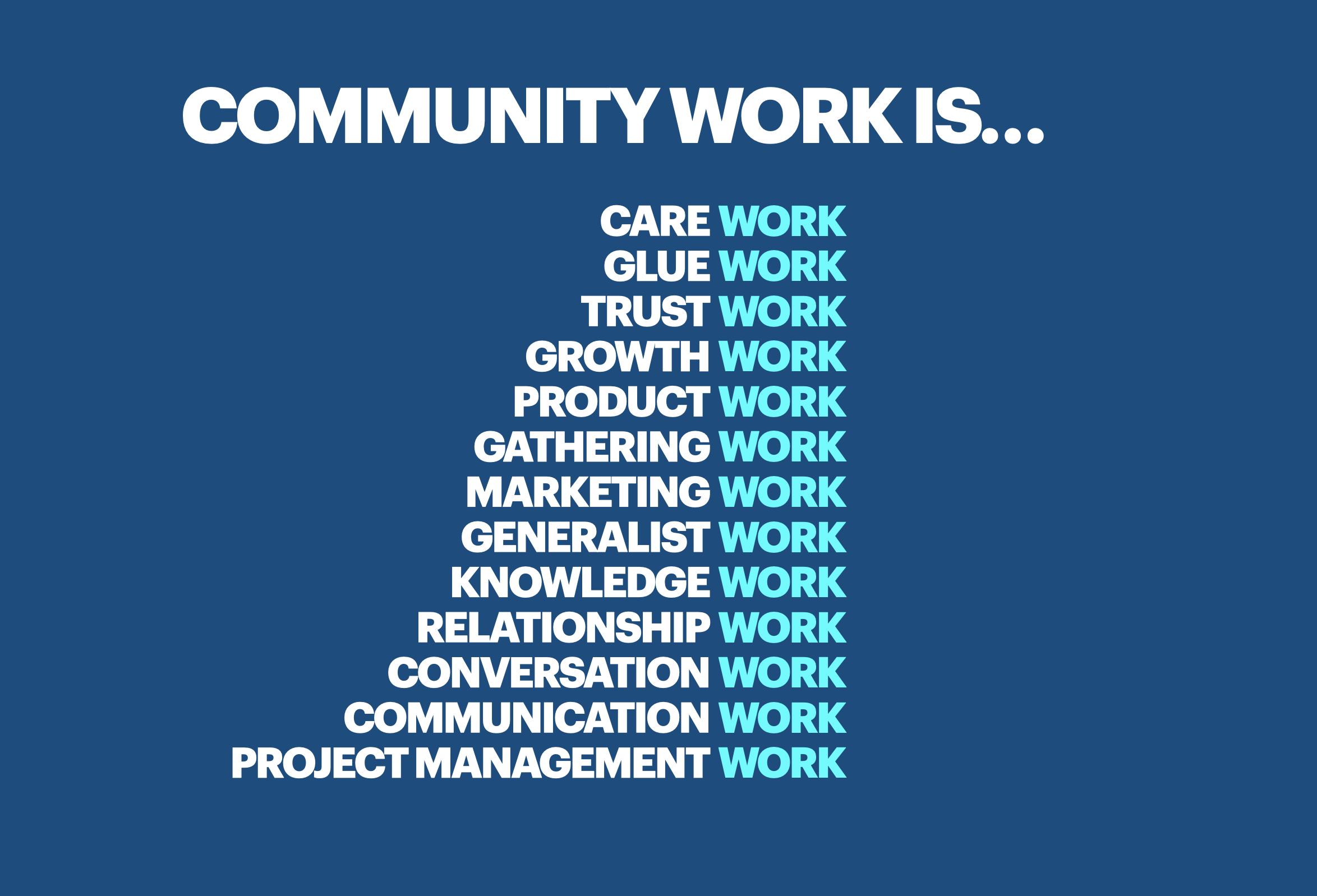 Really what this means is that community building is team work.