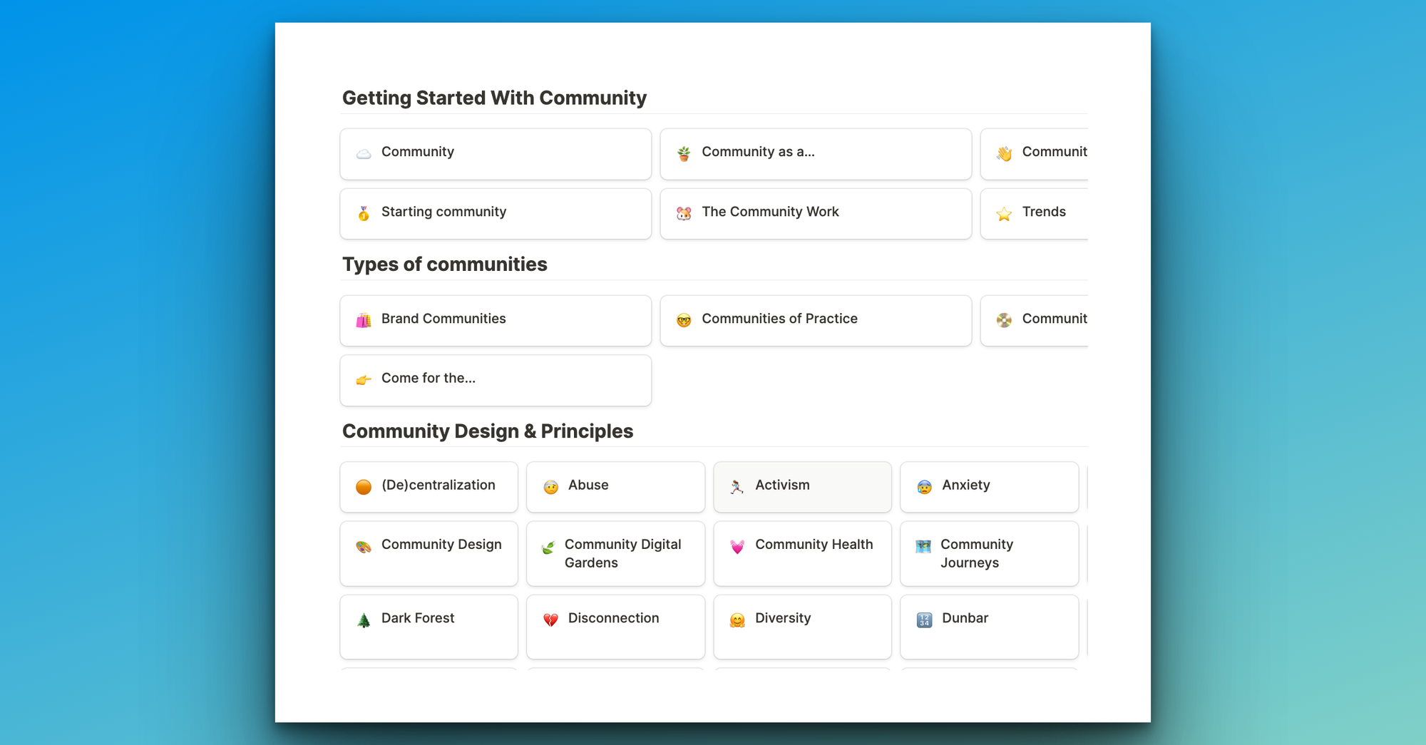 Every article that I write is what I'm thinking or doing about right now in community. I'm actually really excited about what I'm working on, and feel like how we are doing it isn't being talked about anywhere else. My current writing is almost like building in public, but perhaps with a more emphasis on 'thinking in public'. I love to share the thinking about how I believe communities can be built.