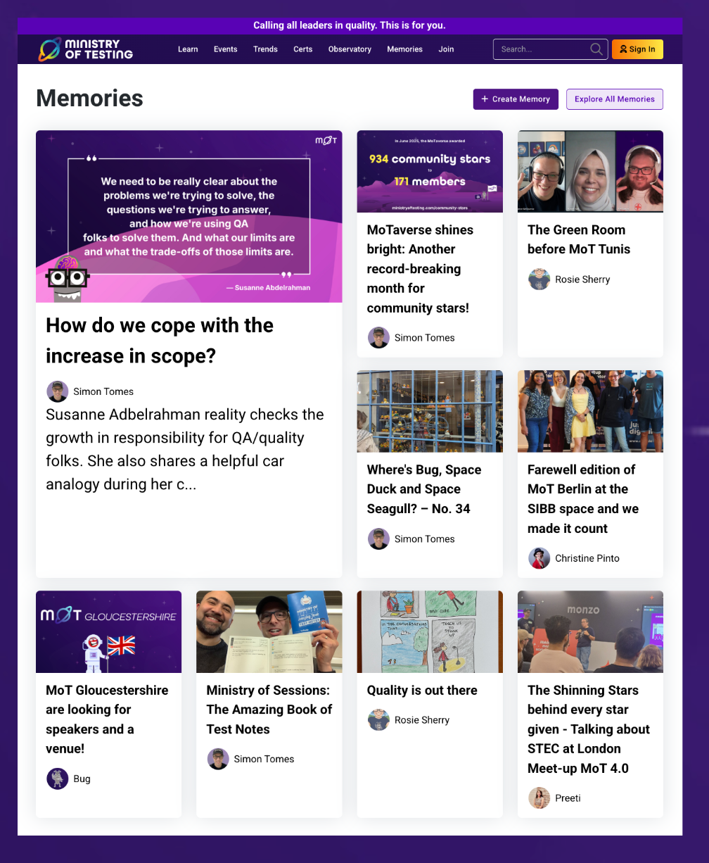 And here's an example of an individual Memory post.