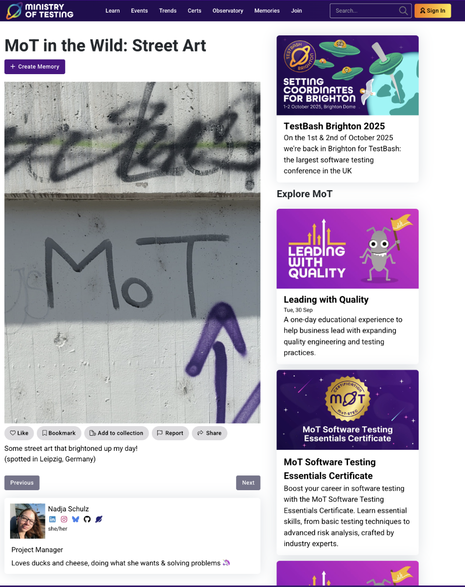 And I truly believe this has happened to me. I adopted creatvity in both my personal and work life. We've embraced fun everywhere we go. We rebranded and sneak in our new bug mascot wherever we can. I initially thought Bug was the most boring thing ever, but it only took a bit of creativity to make Bug the centre of the MoTaverse. Bug makes us laugh. We hide bug into the majority of our images. And the best bit is we can now tell our people (software testers and quality engineers) that they need to find Bugs on our our website.