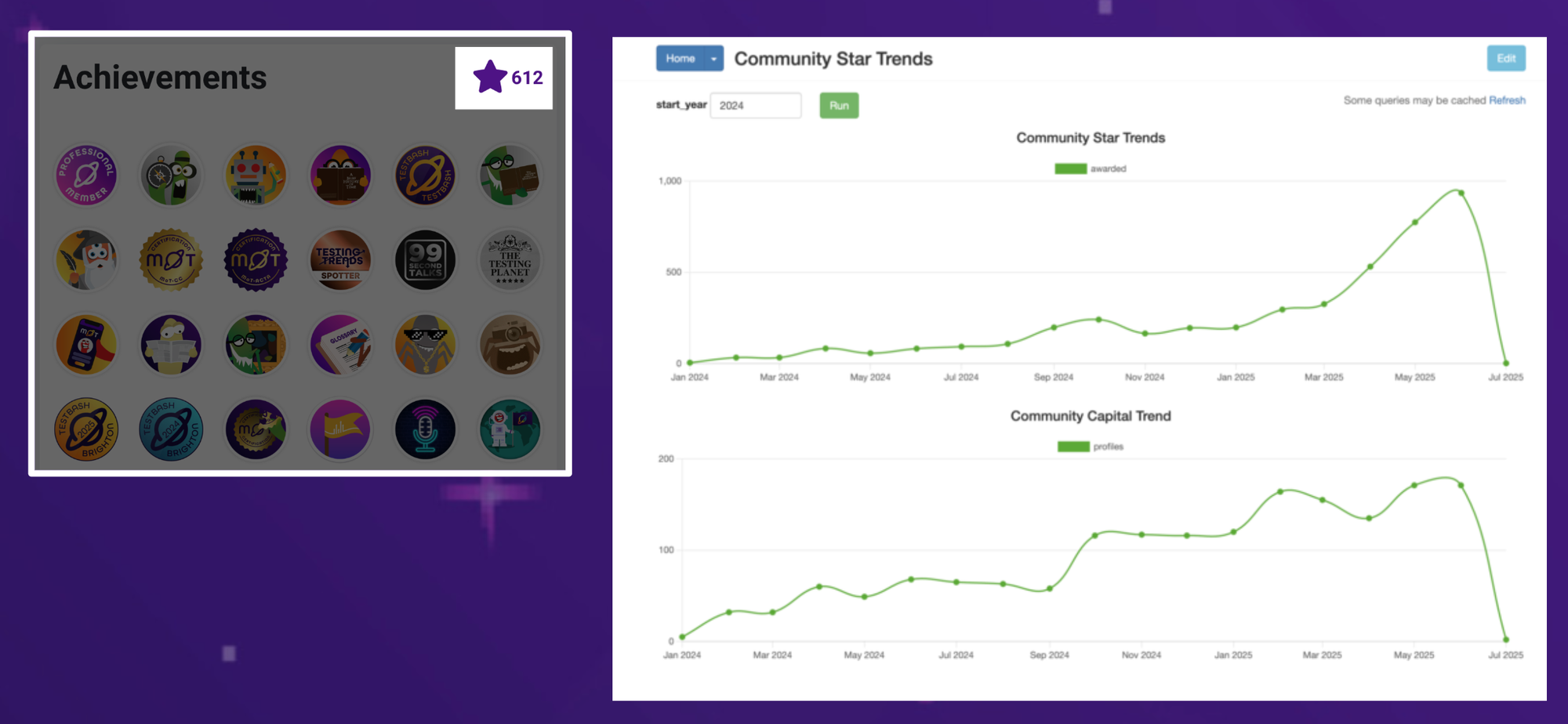 The next thing we built was "Community Stars", also referred to internally as a social capital system. This was built after we had been manually logging community interactions and manually awarding badges for their contributions via Discourse. It was super inefficient, and we did it for many months, but doing it manually eventually meant that we created a community algorithm that was clear, we felt happy with as a team and ready to build upon. The time it was taking to do it manually was also a huge justification to build it into our platform.