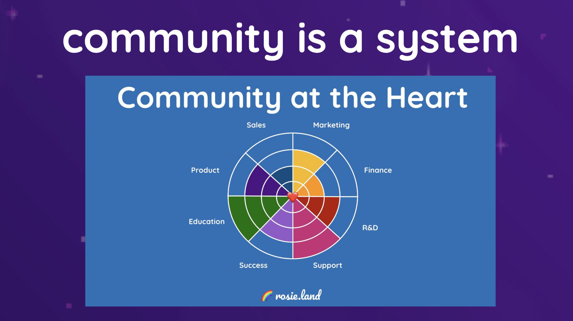 And to be honest, I got tired of it. It's not helping us. Because when community is systems work, we have to understand we are all those things. We are glue work. We do all those things. We should love and embrace it. Our work needs to be spread across the organisation. We cannot exist in one isolated space. It has never worked. It never will.